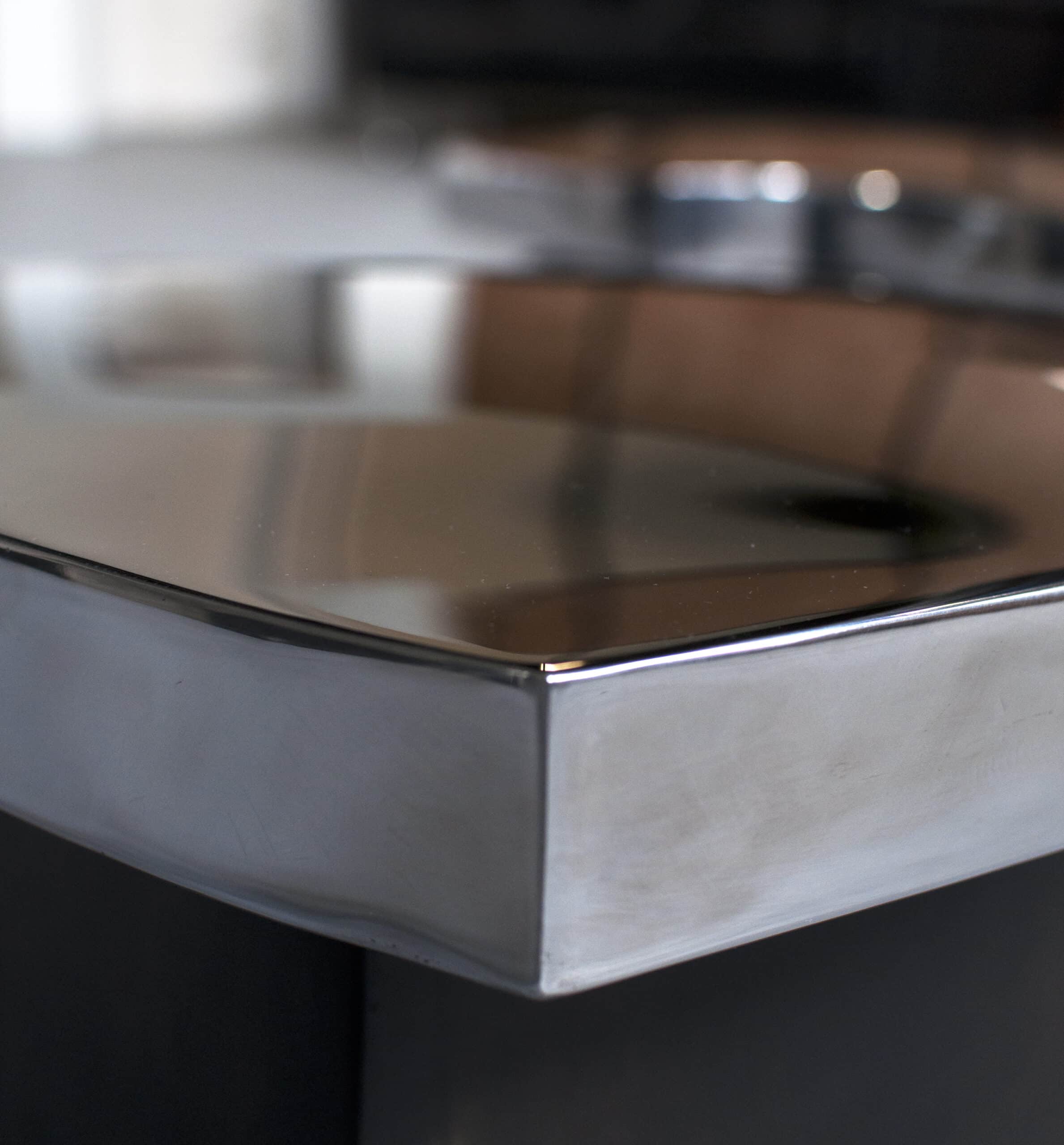 Née du contraste de matières et de formes, la pebble est une table d’appoint ou de bout de canapé qui surprend par ses formes organiques et l’aspect en lévitation de sa tablette polie.