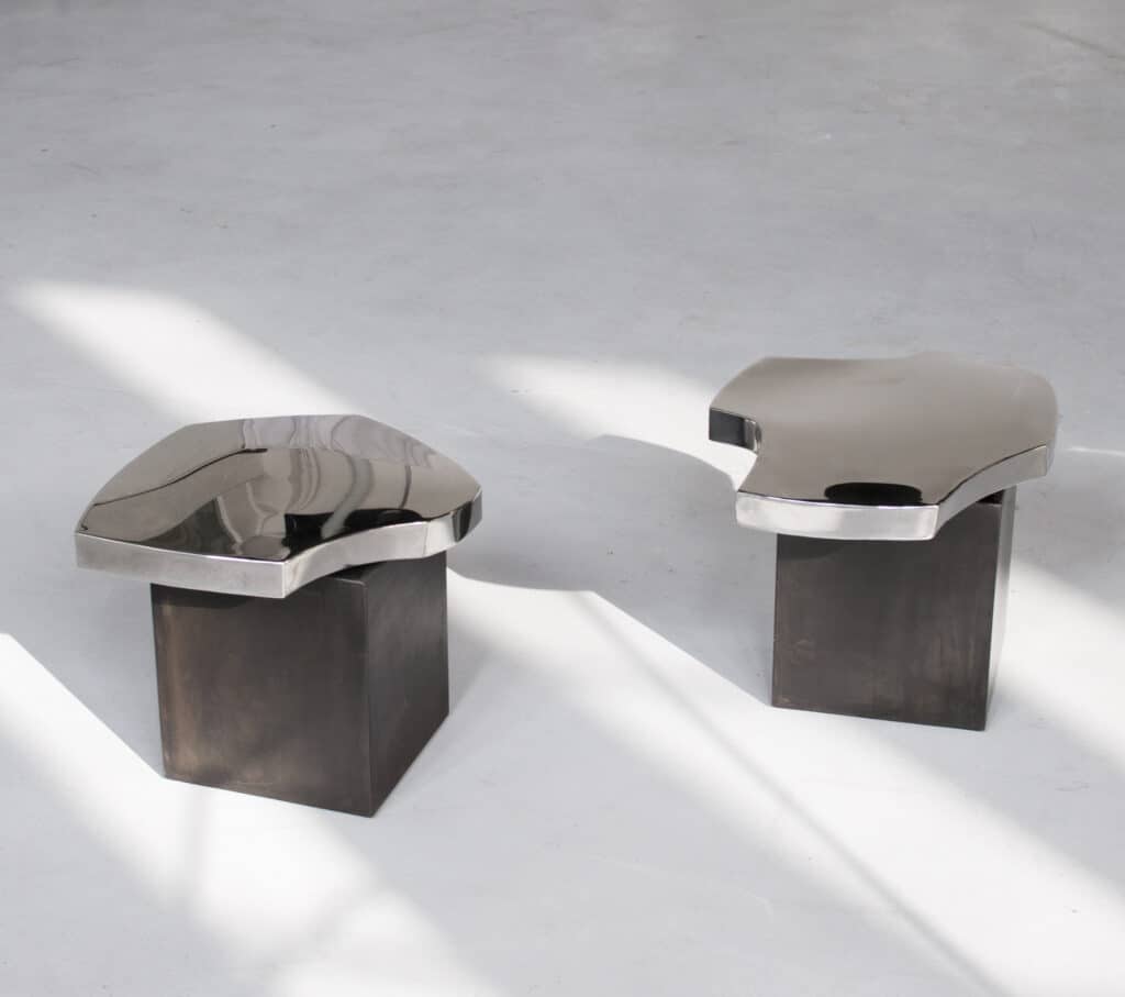 2023 Steel patinated black chocolate – Stainless steel polishedH 35 – 55 – 55 cmLimited edition of 24 + 8 Born from the contrast of materials and shapes, the pebble is a side table or end table that surprises with its organic shapes and the levitating appearance of its polished top. Née du contraste de […]